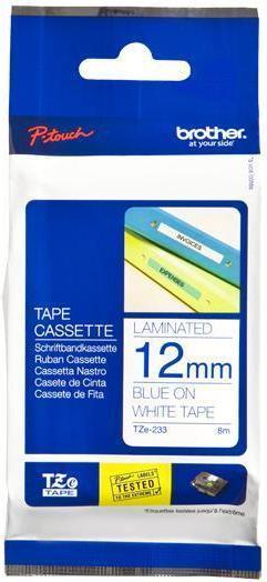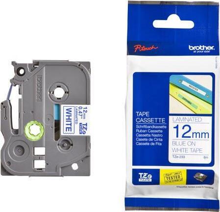 Brother TZe233 - Laminiertes Band - blau auf weiß - Rolle (1,2 cm x 8 m) - 1 Rolle(n) (TZE233)