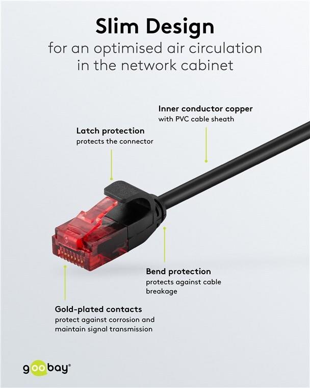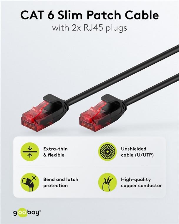 Wentronic Goobay CAT 6 Slim-Patchkabel, U/UTP, Schwarz, 5 m - Kupfermaterial (93717)