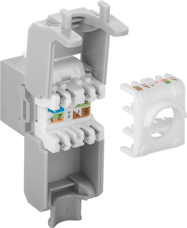 CAT 6a KeyStone RJ45 Jack, ungeschirmt, 500MHz zum Einbau in Modular-Verteilerfelder und Anschlussdosen.