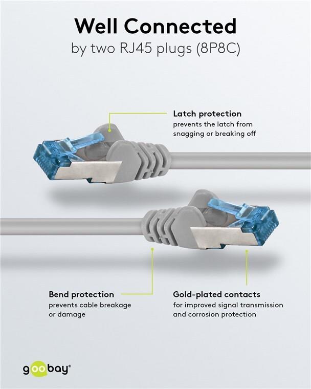 • Wentronic Goobay CAT 6a Patchkabel, S/FTP (PiMF), Grau, 30 m - LSZH halogenfrei, Kupfer (94907)