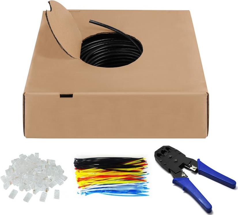 Wentronic Goobay CAT 6 Outdoor Netzwerkkabel-Set, U/UTP, Schwarz, 305 m - CCA, AWG 24/1 (solid), PE (94399)