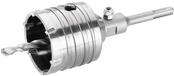 Aufnahmeschaft in 6-kant- oder SDS-PLUS-Variante. Verschleißarme Hartmetallzähne mit Schlitzlötung sorgen für max. Stabilität. Mit auswechselbarem Zentrierbohrer für leicht schlagenden Einsatz geeignet (materialabhängig), passgenaues Einbringen von Schalter- / Verteilerdosen möglich.