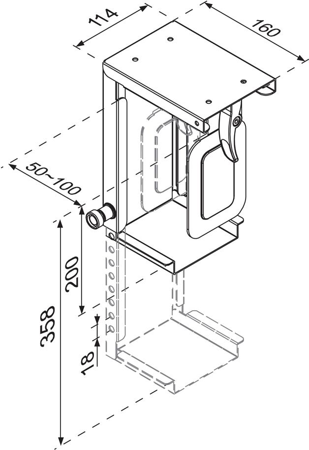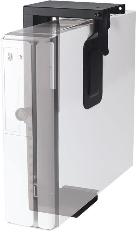 Die Neomounts PC Halterung, Modell CPU-D075BLACK, ermöglicht es Ihnen, einen Computer unter dem Schreibtisch zu montieren. Diese PC-Halterung schafft einen ordentlichen und sauberen Schreibtisch, weil sie unter dem Schreibtisch montiert wird und keinen wertvollen Platz auf dem Schreibtisch verwendet. Erhöhen Sie die Lebensdauer Ihrer CPU aufgrund der Reduktion in die Aufnahme von Staub und Schmutz vom Fußboden. Halten Sie den Arbeitsplatz ordentlich ohne Computer auf den Boden.Diese Neomounts PC-Halterung ermöglicht die vertikale Installation von Computern. Verstecken Sie Ihre Kabel und halten den Arbeitsplatz schön und ordentlich.Einfach in der Breite und Tiefe einzustellen passend zu den meisten Desktop-und Tower-PCs. Die angeführten Daten zeigen, maximale und minimale Breite und Tiefe der Halterung.