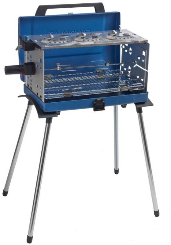 Entdecken Sie den vielseitigen Campingaz 400 SGR Koffergasgrill, der Kochen und Grillen gleichzeitig ermöglicht. Die drei oberen Flammen dienen als Herdplatten, während darunter auf dem Grillrost Hähnchen am Spieß oder Fisch zubereitet werden kann. Dieser kompakte Grill ist ideal für den Urlaub, voll ausgestattet mit praktischen Details und modernem Design. Er kann freistehend mit abnehmbaren Beinen oder direkt auf dem Tisch genutzt werden - maximale Flexibilität im Campingalltag.