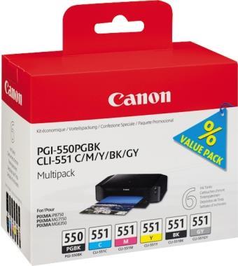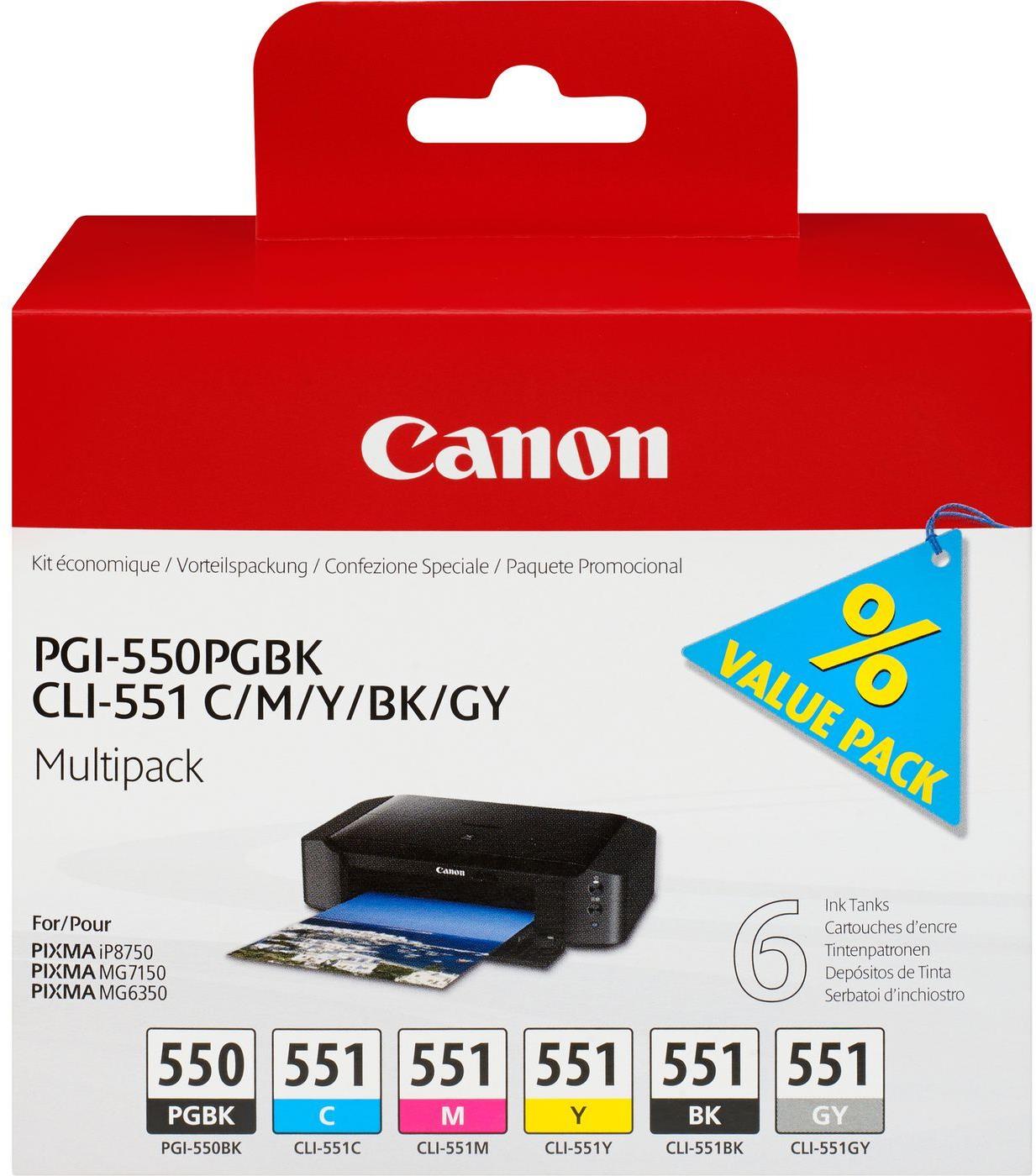 | Produktbeschreibung | Canon PGI-550/CLI-551 PGBK/C/M/Y/BK/GY Multi Pack - 6er-Pack - Grau, Schwarz, Gelb, Cyan, Magenta - Original - Tintenbehälter |