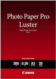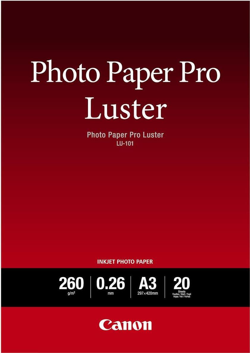 Canon Photo Paper Pro Luster LU-101 - Glanzfotopapier - 260 Mikron A3 (297 x 420 mm) - 260 g/m2 - 20 Blatt - für PIXMA PRO-1, PRO-10, PRO-100 (6211B007)