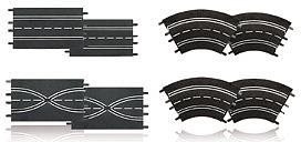 Set mit verschiedenen Schienen zum Ausbau der Rennstrecke