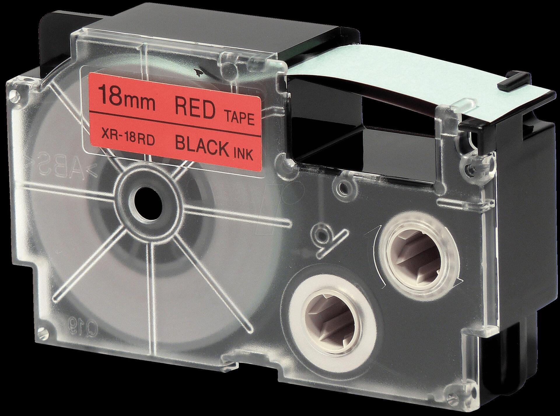 Schriftband für CASIO Label Printer, 18 mm breit, 8 m lang schwarz auf rot (IR-18RD)