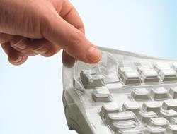 Wenn es mal etwas rauher zugeht. WetEx schützt die Tastatur vor Verschmutzung durch Flüssigkeiten, Staub und Fremdkörpern ohne den Schreibkomfort wesentlich zu beeinträchtigen.