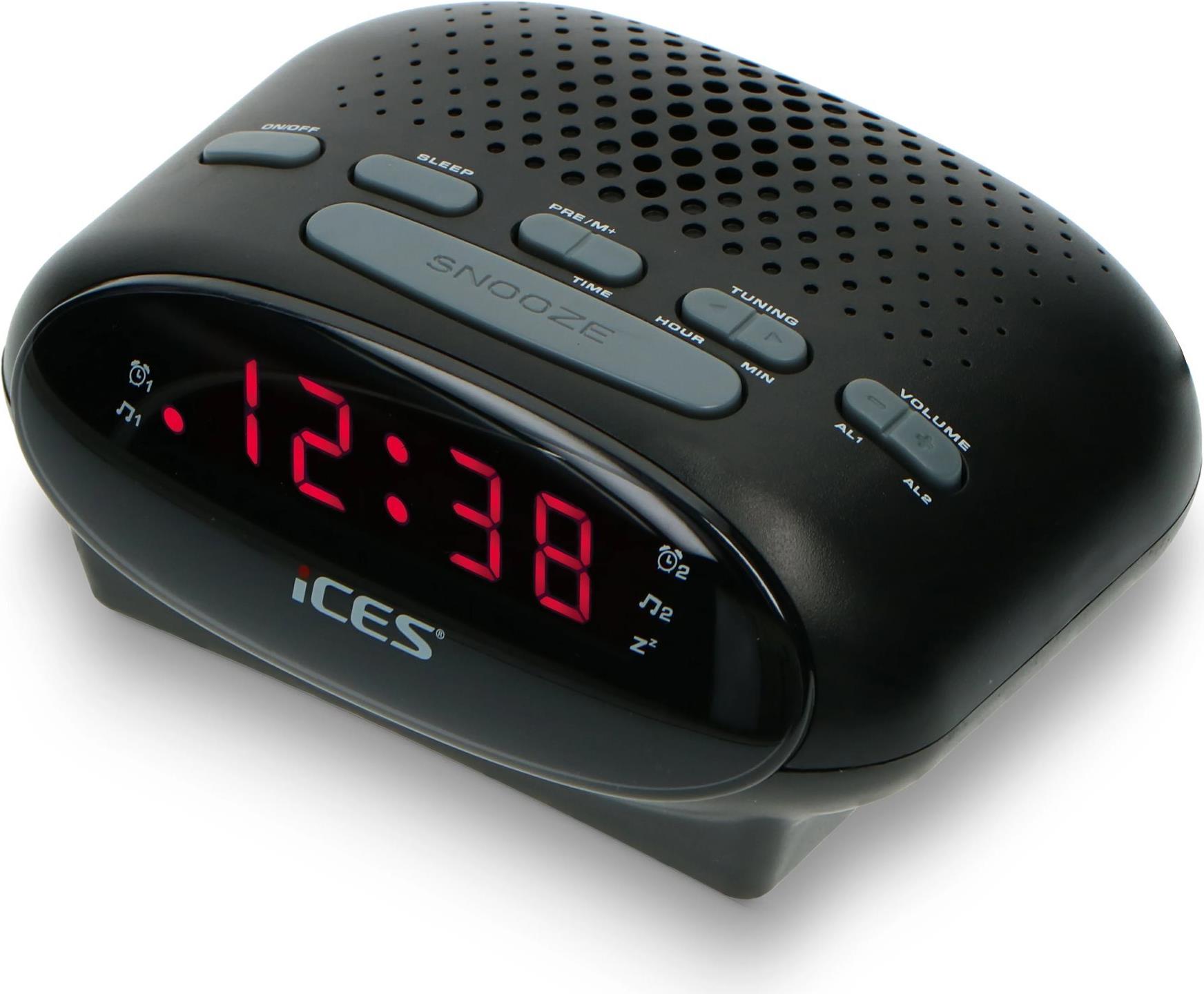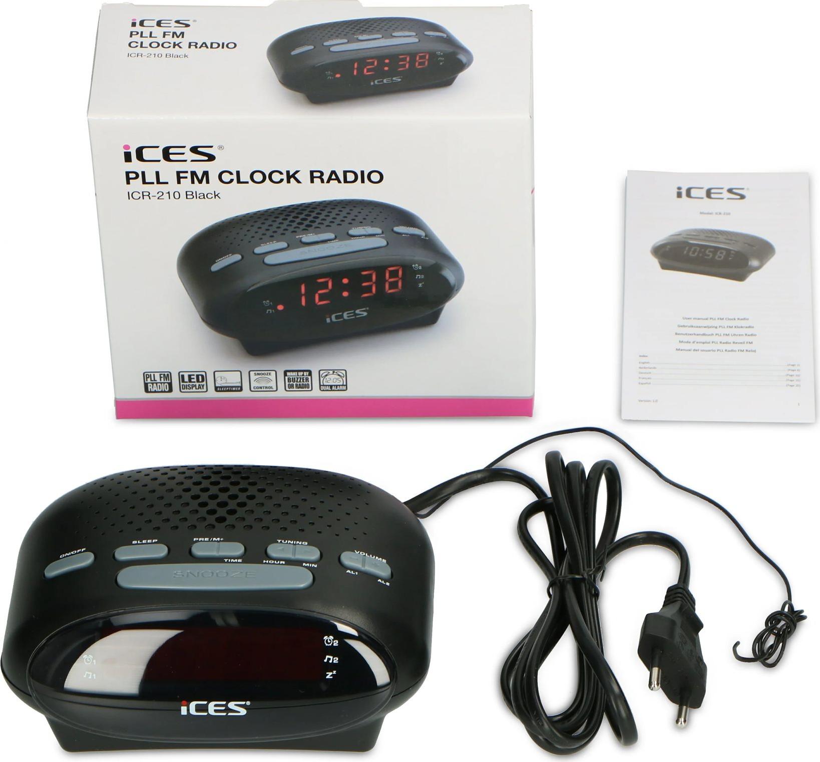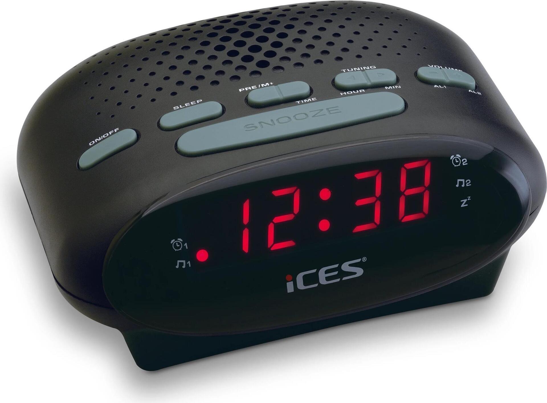 Das ICIS ICR-210 ist ein schlankes und modernes FM-Uhrenradio mit verschiedenen praktischen Funktionen. Der großartige Klang dringt über den eingebauten Lautsprecher klar und deutlich in den ganzen Raum, und dank des PLL-FM-Tuners empfangen Sie alle Ihre Lieblingsradiosender.Passt perfekt auf jeden Nachttisch. Keine komplizierten Tasten und Funktionen, sondern ein solider Radiowecker, auf den man sich verlassen kann.Dank seiner batteriebetriebenen Unterstützung sorgt dieser Radiowecker dafür, dass Sie pünktlich aufstehen und keine Ausreden mehr haben, wenn Sie zu spät aus dem Bett kommen.Dieser kompakte Radiowecker hat ein großes, übersichtliches LED-Display mit roter Zeitanzeige. Selbst mitten in der Nacht können Sie deutlich sehen, wie spät es ist.Der Wecker ist mit einer Doppelalarmfunktion ausgestattet, damit sowohl Sie als auch Ihr Partner pünktlich geweckt werden. Und wenn Sie noch etwas länger liegen bleiben wollen, nutzen Sie die Schlummerfunktion, und der Alarm geht automatisch nach 9 Minuten erneut an.