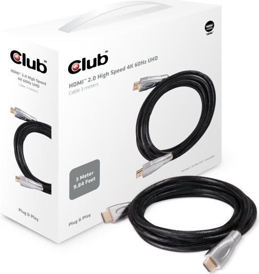 Das Club 3D Premium High Speed HDMI 2.0 4K60Hz UHD Kabel ermöglicht die Verbindung Ihres HDMI 2.0 fähigen Gaming PC oder Laptop mit einem (Ultra) High Definition Monitor oder anderen Produkten mit HDMI 2.0 Unterstützung. Es unterstützt komplett die 'Premium High Speed HDMI mit Ethernet' Spezifikation und stellt sicher, dass Video bis zu 4K UHD 3840x2160p bei 60Hz wiedergegeben wird, sowie Audio und Daten Streams.