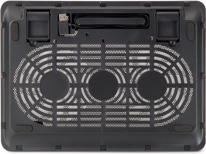 Die kühlende Notebook-Unterlage von Conceptronic sorgt mit zwei lautlosen und dennoch leistungsstarken Lüftern für einen sicheren und komfortablen Betrieb Ihres tragbares Gerätes. Die kühlende Unterlage wird per USB mit Strom versorgt, sodass Sie überall verwendet werden kann, ohne dass eine Steckdose erforderlich ist. Die Unterlage ist intelligent gestaltet, verfügt über eine Einkerbung für Ihr USB-Kabel, damit sich das Kabel nicht verheddert und beschädigt wird. Eine praktische und vielseitige Ergänzung für mobiles Arbeiten und Spielen.