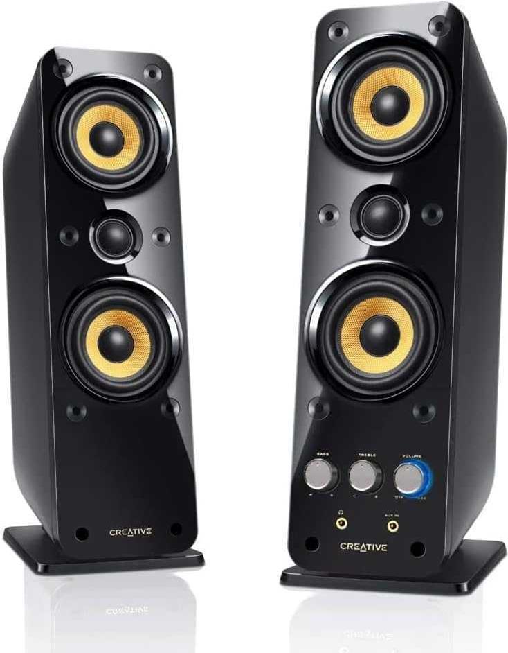 Mit dem GigaWorks T40 Series II Lautsprechersystem von Creative können Sie Ihre Musik in einer ganz neuen Qualität erleben. Das für Hi-Fi-Klang am PC konzipierte 2.0-System in schwarzer Hochglanzoptik kombiniert hochwertige Komponenten und eine beeindruckende Leistung mit allen Vorzügen der renommierten GigaWorks-Familie, um Ihre Musik in bester, unverfälschter Qualität wiederzugeben. Jeder Lautsprecher verfügt über zwei Mitteltontreiber mit Glasfasergewebe-Konus für warme Mitten und einen Hochtöner mit Gewebekalotte für kristallklare Höhen. Diese hochwertigen Komponenten sind in einer audiophilen Konfiguration mit Mitteltontreiber, Hochtöner und Mitteltontreiber angeordnet und werden dank der Creative BasXPort-Technologie um dynamische Bässe ergänzt. Mit seinen bequem erreichbaren Reglern auf der Vorderseite und zwei Eingängen für den gleichzeitigen Anschluss verschiedener Audioquellen ist dies das ideale System für alle, die sich nur mit dem Besten zufrieden geben.