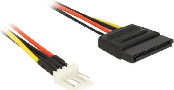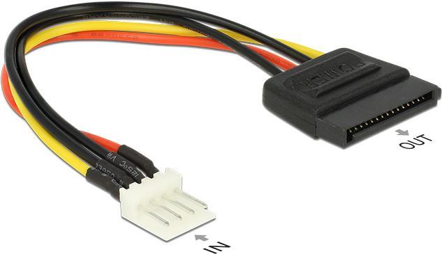 Dieses Stromkabel von Delock lässt sich an den 4 Pin Floppy Stromanschluss eines Netzteils anschließen und ermöglicht die Stromversorgung eines Laufwerks mit SATA 15 Pin Stromanschluss.