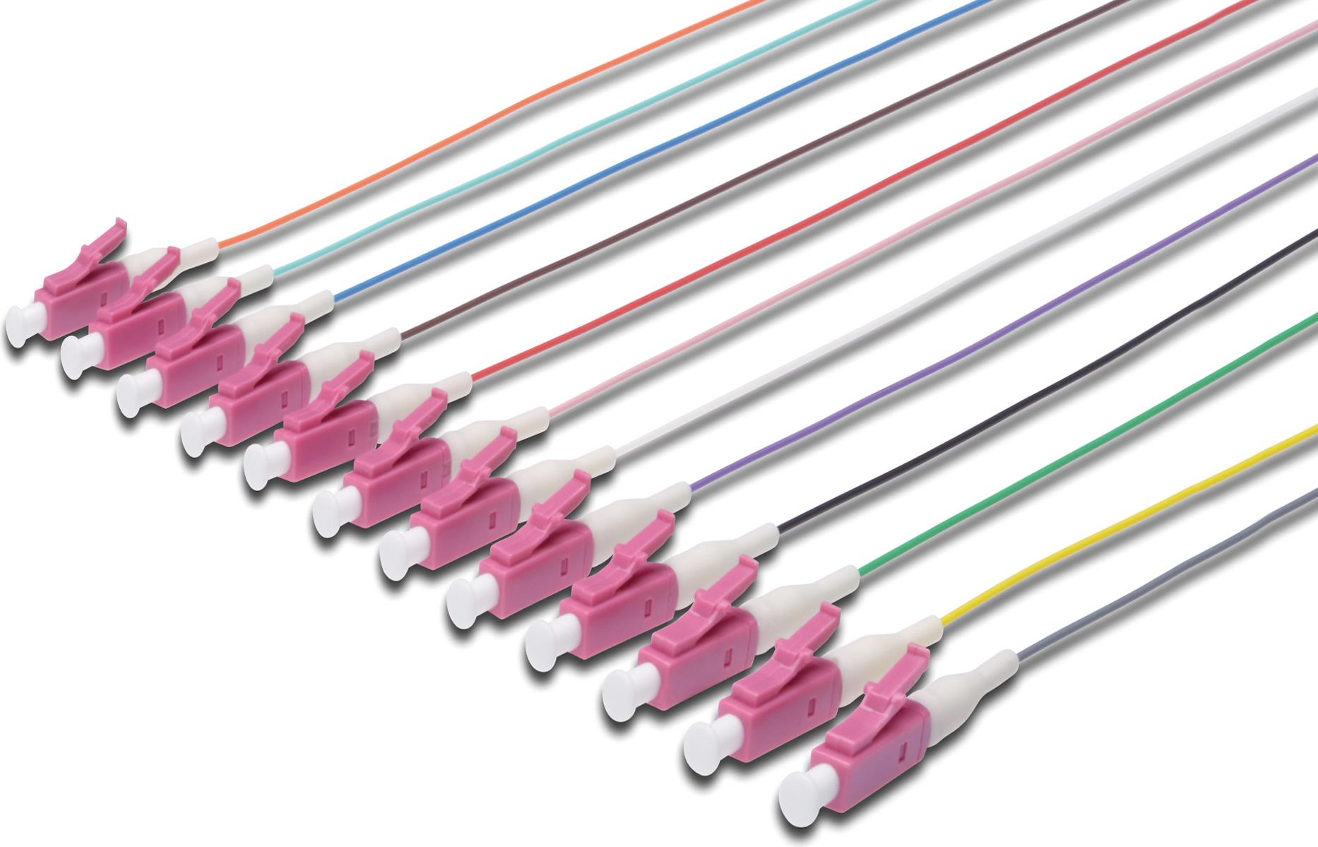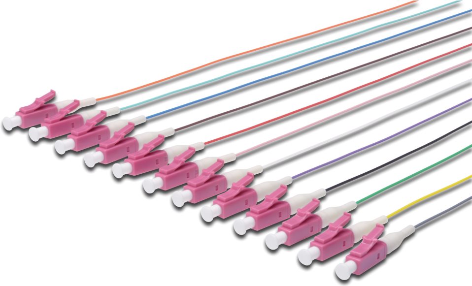 Die DIGITUS® LWL Pigtails sind erhältlich als LC Simplex, SC Simplex und ST Simplex Version und bieten Ihnen mit den Klassen OS2, OM2, OM3 und OM4 hervorragene Leistung und Verbindungsqualität für Ihr Netzwerk. Der Steckverbinder entspricht der Norm IEC 61754-4 2002 und ist ausgestattet mit einer Zirkonia-Keramik Ferrule. Die farbigen Fasersätze sind nach IEC 304 farbcodiert (Weiß, Violett, Türkis, Schwarz, Rot, Pink, Orange, Grau, Grün, Gelb, Braun, Blau).