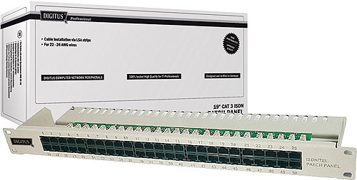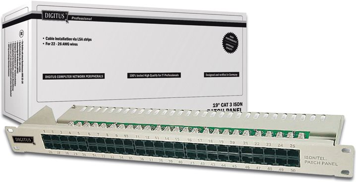 Die ISDN Patch Panel von DIGITUS® sind erhältlich als 25- oder 50-Port Variante. Mit dem 1,5 mm galvanisiertem kaltgewalzten Stahl sind sie perfekt für die 19" Schrankmontage geeignet.