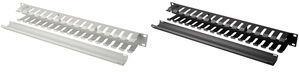Das Kabelführungspanel wird an den 483 mm (19)-Profilschienen befestigt. Eine abnehmbare Rückblende erleichtert den Zugang zu verlegten Rangierkabeln. Ein optimales Kabelmanagement in Ihrem 483 mm (19) Netzwerk- oder Serverschrank ist garantiert.