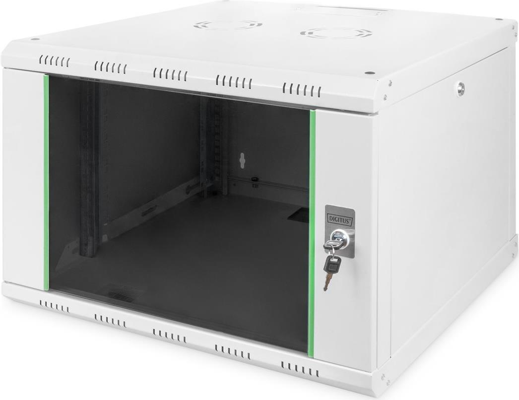Die DIGITUS-Wandschränke sind aus einer robusten Stahlblechkonstruktion mit einem Minimum an Nähten gefertigt. Die Seitenteile sind abnehmbar und abschließbar. Der Schrank ist schnell und einfach zu montieren. Separat sind Nivellierfüße oder Rollen erhältlich. Durch ihre Flexibilität sind die Schränke ideal für alle gängigen IT- und Telekommunikationsanwendungen.