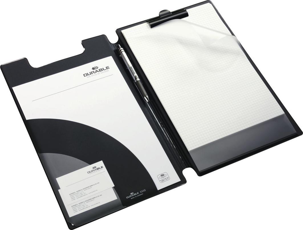 DURABLE Klemmbrett-Mappe, DIN A4+, schwarz, aus Weichfolie in A4 Übergröße, mit Kartonverstärkung, mit Einschlagblatt (2332-01)