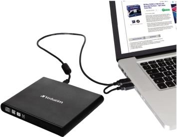 Die Stromversorgung des externen Slimline CD/DVD-Brenners von Verbatim erfolgt über USB, Sie brauchen also keinen sperrigen Adapter. Das Laufwerk ist kaum größer als eine DVD und passt einfach in die Tasche - so können Sie es überall mit hinnehmen!
