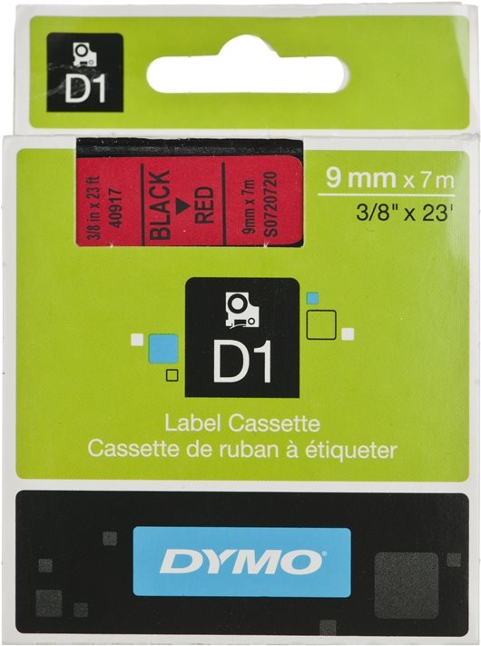 Dymo D1 - Selbstklebende Etiketten - Schwarz auf rot - Rolle (0,9 cm x 7m) - 1 Rolle(n) (40917)