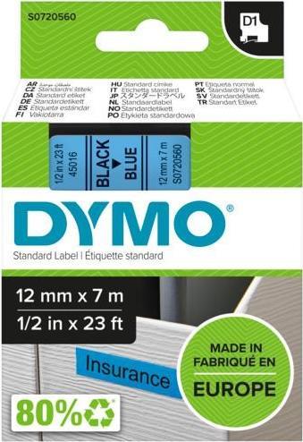 DYMO D1 - Selbstklebend - Schwarz auf Blau - Rolle (1,27 cm x 7 m) 1 Kassette(n) Etikettenband - für LabelMANAGER; LabelPOINT 100, 200, 300 (S0720560)