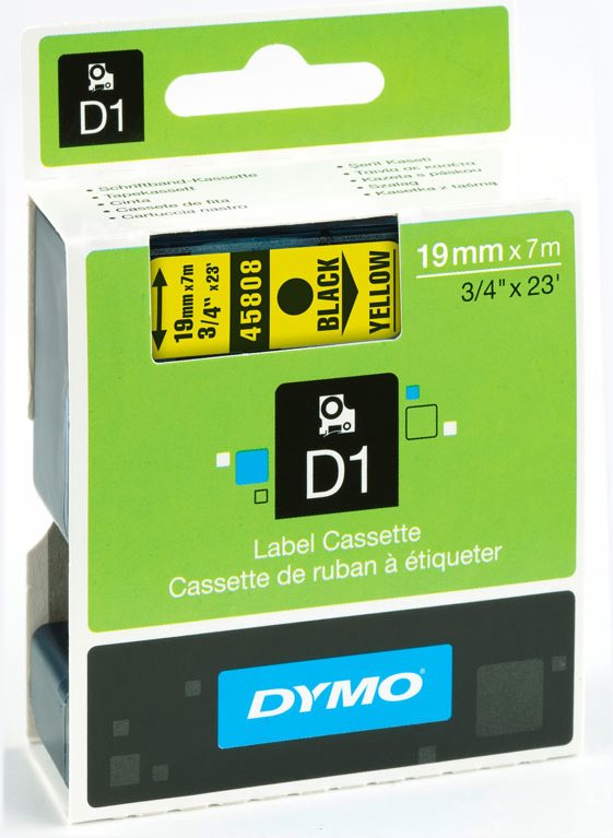 DYMO D1 Standard - Kunststoff - selbstklebend - Schwarz auf Gelb - Rolle (1,9 cm x 7 m) 1 Kassette(n) Etikettenband - für LabelMANAGER 360D, 420P; DYMO LabelWriter 450 Duo (S0720880)