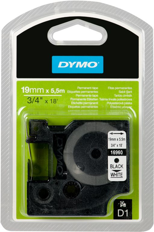 DYMO D1 - Selbstklebende Polyesteretiketten - Schwarz auf Weiß - Roll (1,9 cm x 5,5 m) - 1 Rolle(n) - für LabelMANAGER 210D, 350, 350D, 400, 450, 450D, PC, PC2; LabelPOINT 150, 350 (S0718070/16960)