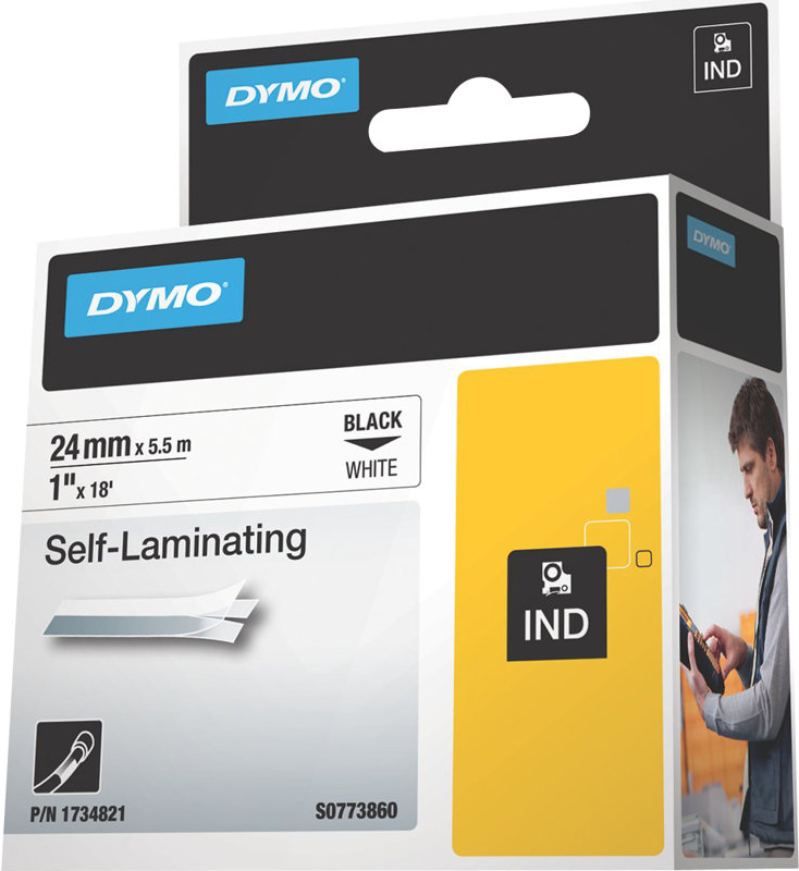 DYMO Rhino - Selbstlaminierendes Vinylband - weiß - Rolle (2,4 cm x 5,5 m) - 1 Rolle(n) - für Rhino 6000, 6000 Hard Case Kit (S0773860)