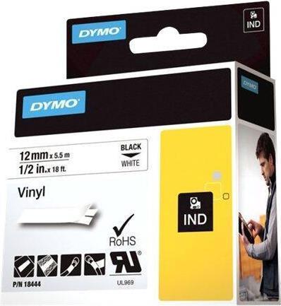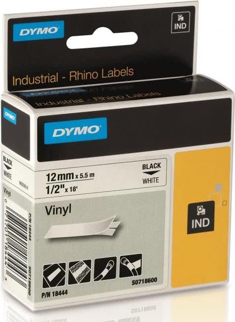 DYMO RhinoPRO Coloured Vinyl - Permanentes selbstklebendes Vinylband - weiß - Rolle (1,2 cm x 5,5 m) - 1 Rolle(n) (18444)