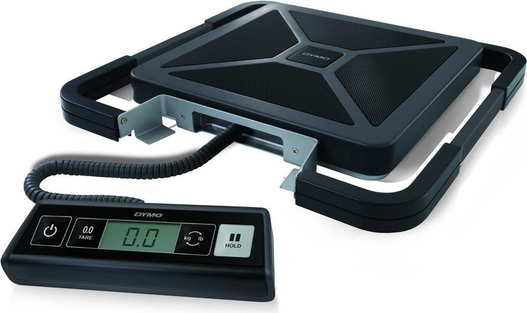 DYMO elektronische Paketwaage S50, Tragkraft: 50 kg, schwarz Wiegefläche: 300 x 300 mm, abnehmbares LCD-Display, Halte- (S0929020)