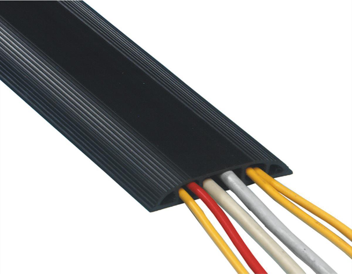 Der Kabelschutz verhindert Unfälle und Schäden an Kabeln. Komplett mit abgeschrägten Kanten mit rutschfesten Rippen. 3 große Kanäle für eine optimale Trennung von Daten- und Netzleitungen.