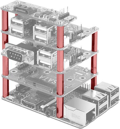 Mit diesem Zubehör Set von Delock können Sie verschiedene Zusatzmodule wie Adapter oder Konverter an Ihrem Raspberry Pi Board befestigen. Des Weiteren können Sie mit diesem Zubehör mehrere Raspberry Pi Boards übereinander montieren.