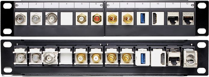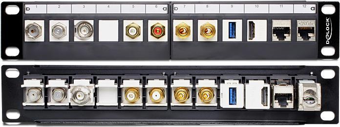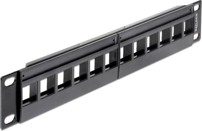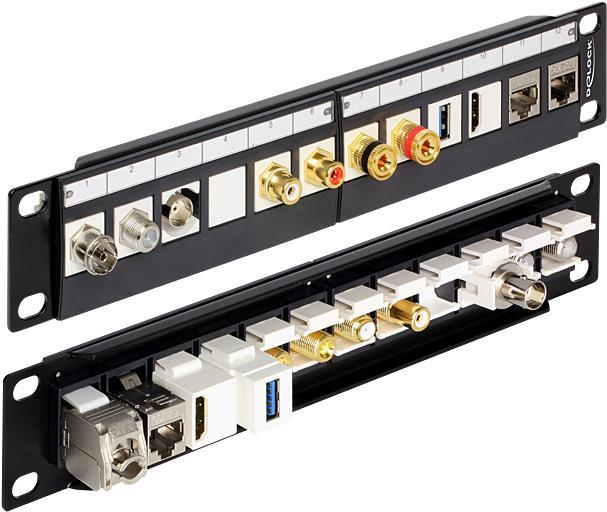 Dieses Patchpanel von Delock können Sie zum Einbau in einen 10" Geräteschrank verwenden. Durch die standardisierten Abmessungen ist es zur einfachen Snap-In Montage von 12 Keystone Modulen geeignet.