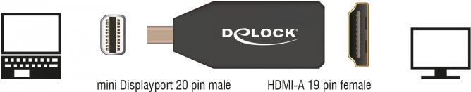 Delock 4K Passive - Videoadapter - Mini DisplayPort männlich zu HDMI weiblich - Schwarz - 4K Unterstützung (65583)