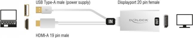 Mit diesem Adapter von Delock können Sie z. B. einen Displayport Monitor über eine freie HDMI Schnittstelle Ihres Systems anschließen.