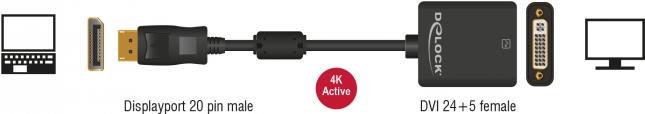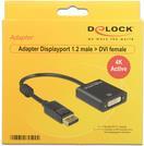 DeLOCK - DisplayPort-Adapter - DisplayPort (M) - DVI-I (W) - 20cm (DisplayPort 1,2) - aktives Kabel (Signalregenerierung) - Schwarz (62599)