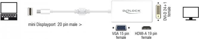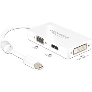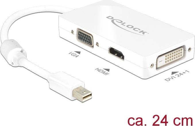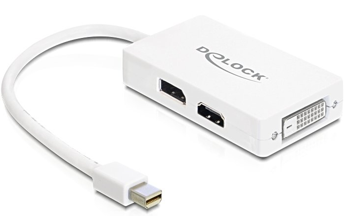 Mit diesem mini Displayport Adapter von Delock können Sie Ihr System um eine VGA, HDMI und DVI Schnittstelle erweitern und verschiedene Geräte, wie z. B. Fernseher, Projektor, PC Monitor etc. anschließen. Es kann nur ein Monitor am Adapter betrieben werden, nicht mehrere gleichzeitig.