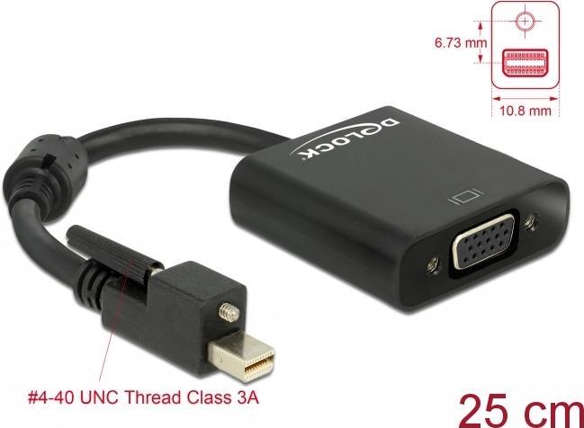 DeLOCK - Videoanschluß - DisplayPort / VGA - 32 AWG - Mini DisplayPort (M) - DB-15 (W) - 25cm - Schwarz - Gewindeanschluss (62641)