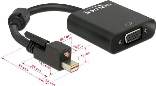 Mit diesem Adapter von Delock können Sie z. B. einen VGA Monitor über eine freie mini Displayport Schnittstelle Ihres Systems anschließen. Die Schraube des mini Displayport Steckers gewährleistet eine sichere Verbindung und verhindert ein unbeabsichtigtes Herausziehen des Kabels.