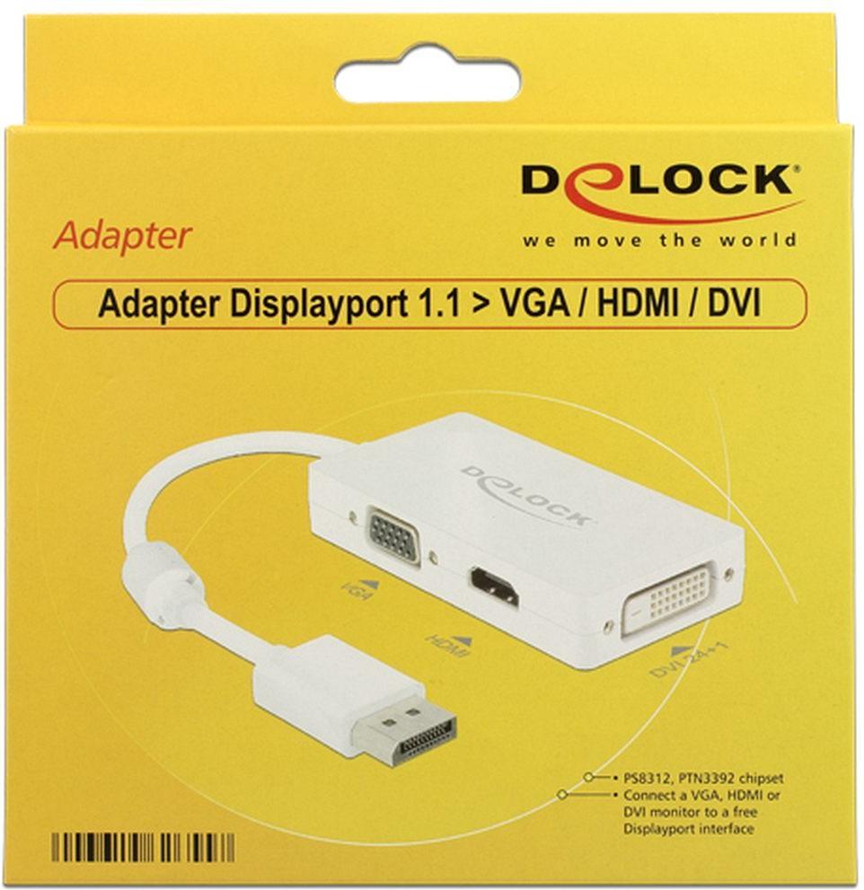 Delock Adapter DisplayPort 1.1 Stecker > VGA / HDMI / DVI Buchse Passiv weiß (62655)