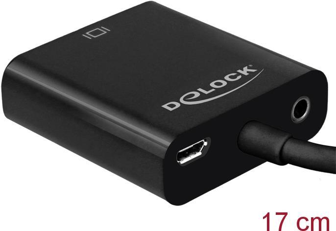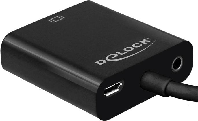 Mit diesem Adapter von Delock können Sie z. B. einen VGA Monitor über eine freie HDMI Micro-D Schnittstelle Ihres Systems anschließen. Des Weiteren haben Sie die Möglichkeit über die Klinkenbuchse das Tonsignal zu übertragen.