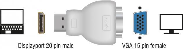 Mit diesem Adapter von Delock können Sie einen VGA Monitor über eine freie Displayport Schnittstelle Ihres Systems anschließen.