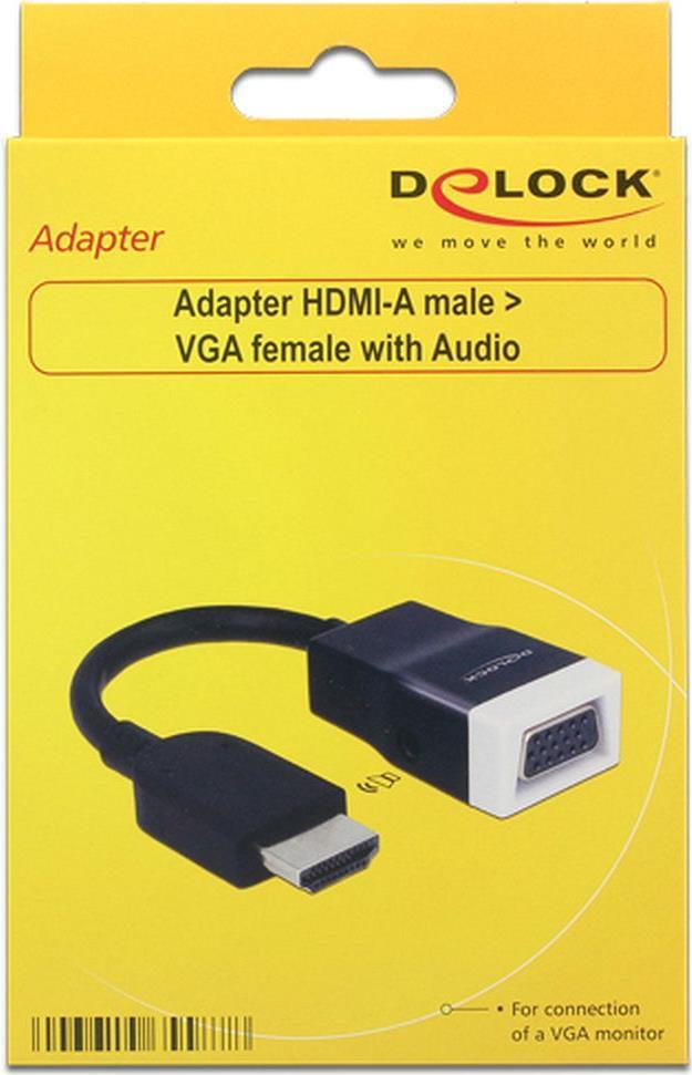 | Produktbeschreibung | Delock Adapter HDMI-A Stecker > VGA Buchse mit Audio - Videokonverter - Schwarz, weiß |
