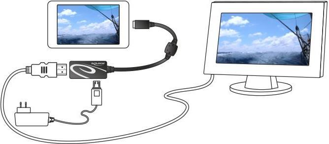 Mit diesem MHL 3.0-Adapter von Delock können Sie z.B. Ihr Smartphone an einen Fernseher mit UHD-Unterstützung anschließen und mit einem optionalen HDMI-Kabel Bilder oder Videos in UHD-Qualität ansehen. Außerdem verfügt der Adapter über einen Standard USB Micro-B Anschluss an der Seite. Schließen Sie das Netzteil Ihres Smartphones an den USB-Micro-B-Anschluss an, um ein Video abzuspielen und Ihr mobiles Gerät gleichzeitig mit Strom zu versorgen.