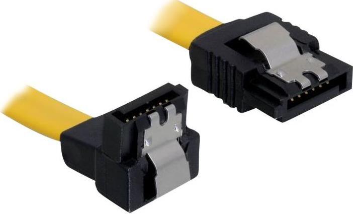 Dieses SATA Kabel von Delock dient zum internen Anschluss verschiedener SATA Geräte wie z.B. SATA Festplatten, SATA Controller Karten. Beim Anschließen einer Festplatte wird das SATA Kabel nach unten weggeführt. Zusätzliches Einrasten beim Anschließen der Kabel wird durch Metall Clips am SATA Stecker ermöglicht.