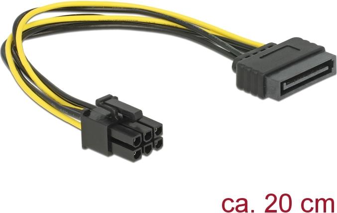 Dieses Delock Stromkabel dient zum Anschluss an ein Netzteil mit SATA Schnittstelle und ermöglicht die Stromversorgung von PCI Express Karten, u.a. PCI Express Grafikkarten.