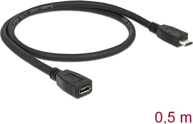 DeLOCK - USB-Verlängerungskabel - 5-polig Micro-USB Typ B (M) - 5-polig Micro-USB Typ B (W) - 50cm (USB/USB2.0) (83567)