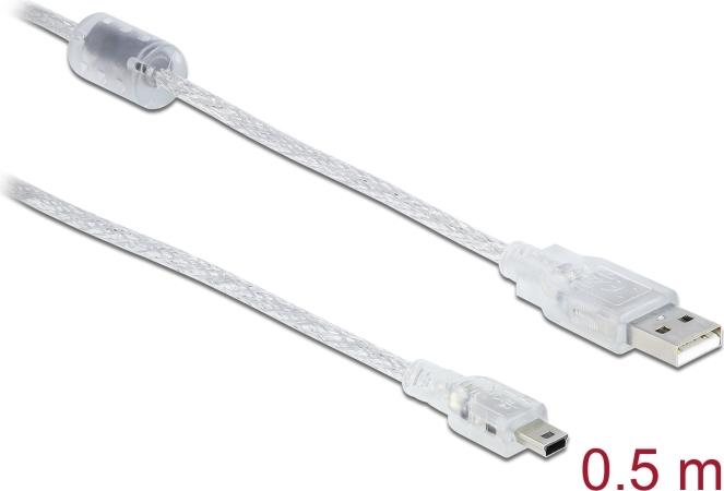 Delock - USB-Kabel - Mini-USB, Typ B (M) zu USB (M) - USB2.0 - 50cm - durchsichtig (83904)