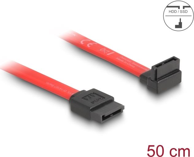 Delock - SATA-Kabel - Serial ATA 150/300 - SATA (W) zu SATA (W) - 50cm - nach oben gewinkelter Stecker, gerader Stecker - Rot (84220)